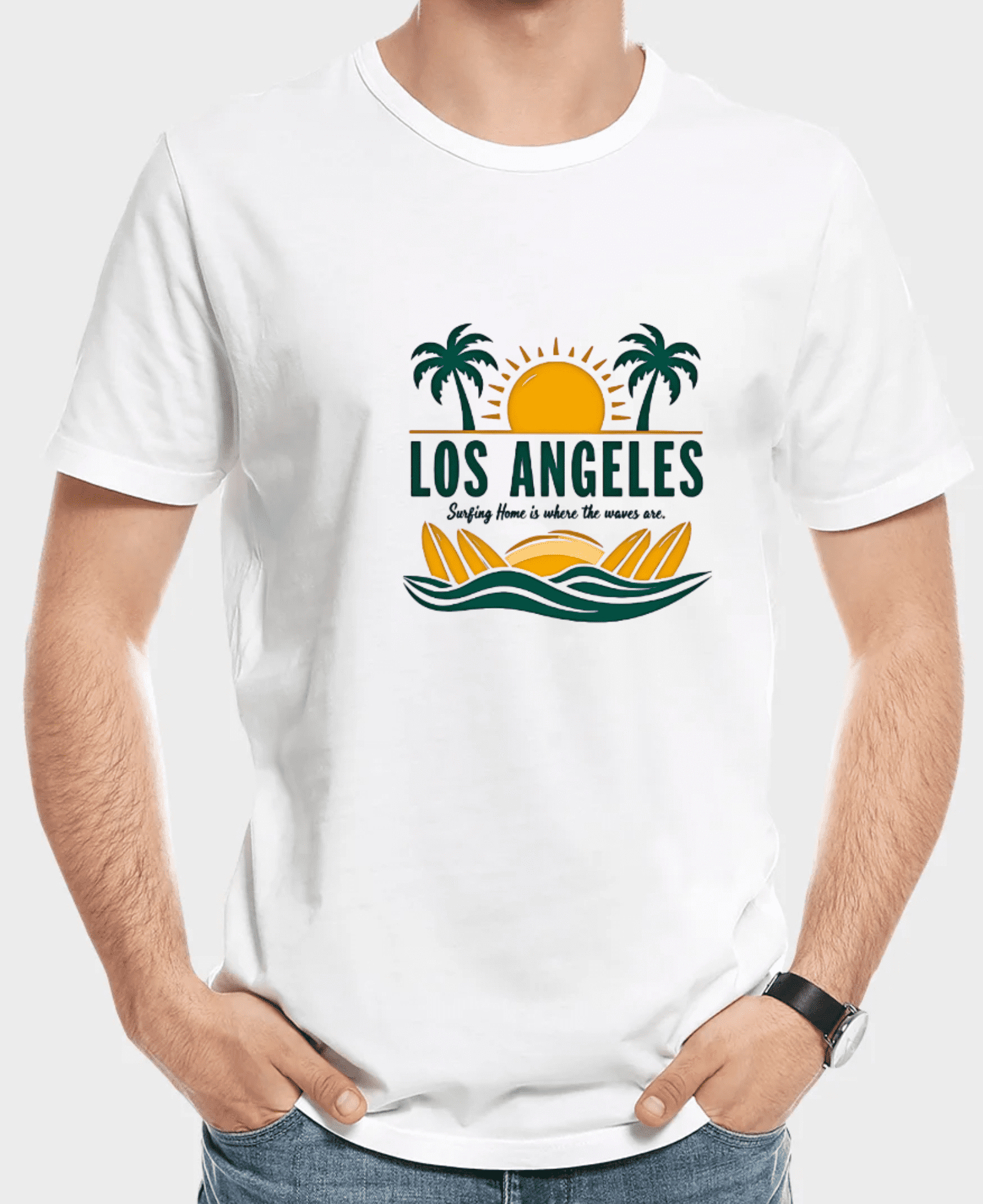 In summary, this artwork encapsulates the spirit of Los Angeles’ coastal culture, highlighting its beaches, surfing heritage, and iconic scenery in a visually appealing and nostalgic way.