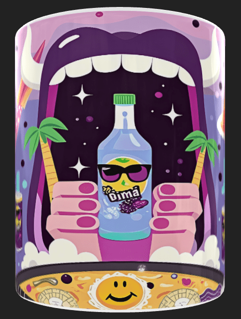 - The artwork draws inspiration from pop art and surrealism, reminiscent of Andy Warhol’s bold consumer culture imagery and Salvador Dalí’s dreamlike distortions.