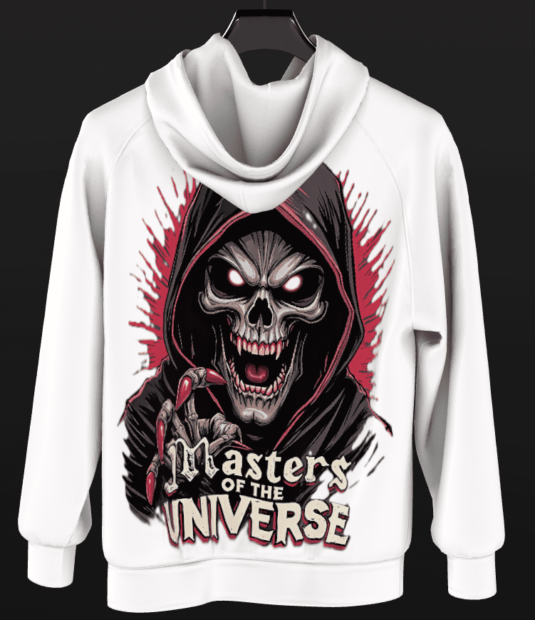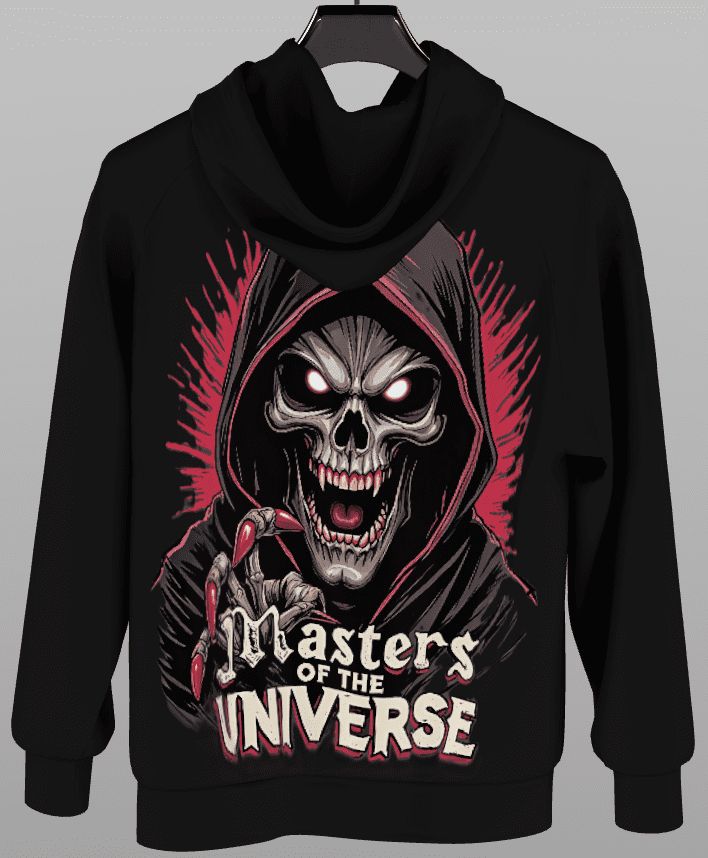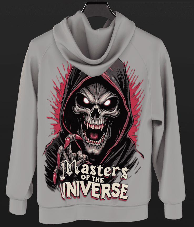 This text isn’t just a label; it’s a declaration of dominance, with the “U” in Universe stylized to echo the skeletal jawline.