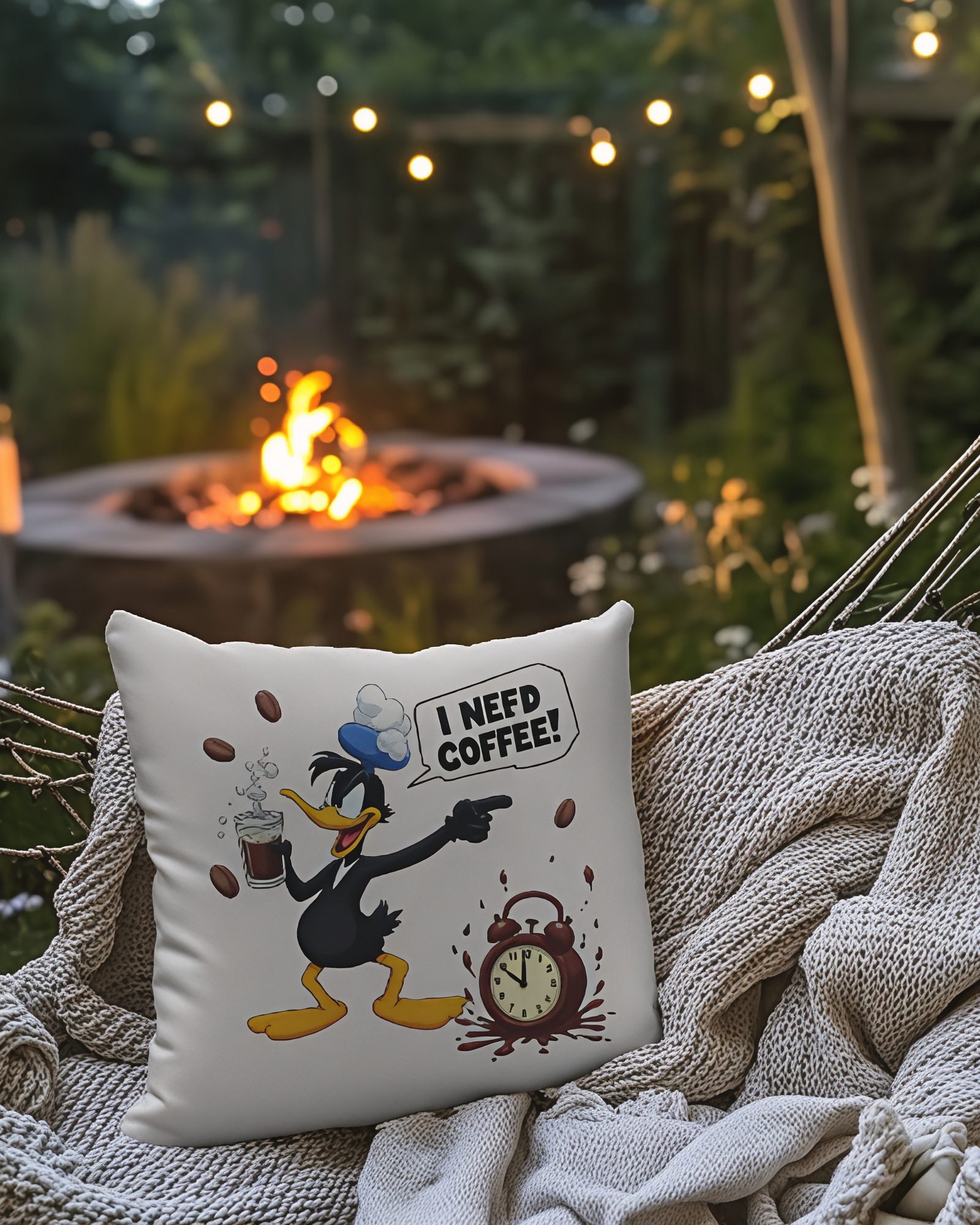 The theme of needing coffee to start the day is a relatable, modern trope, often seen in memes and pop culture, where caffeine is portrayed as a life-saving necessity.
