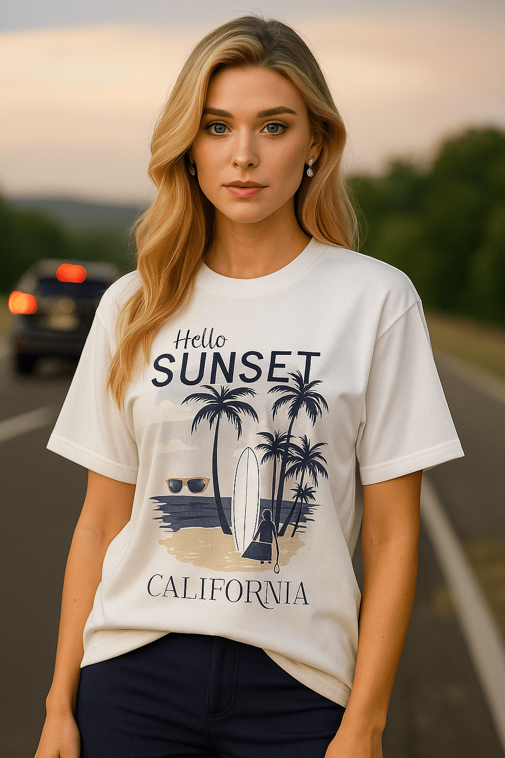 The surfboard and sunglasses hint at an active, carefree lifestyle, motivating viewers to embrace nature, travel, or simply cherish moments of tranquility.
