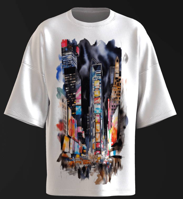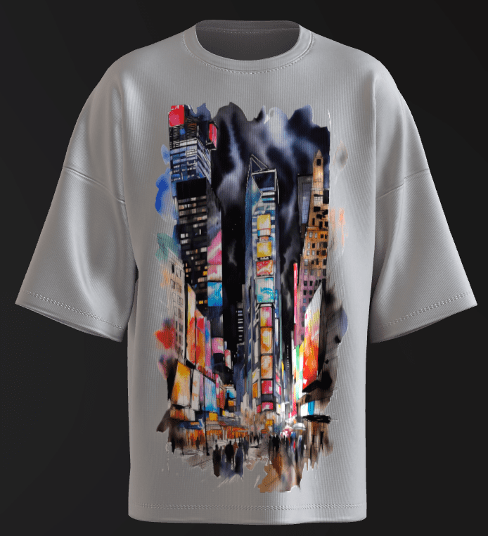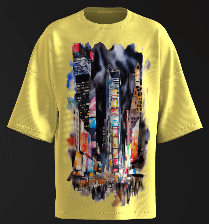 - The t-shirt piece draws inspiration from the real-life vibrancy of Times Square, a landmark synonymous with New York’s relentless energy, commercialism, and cultural melting pot.