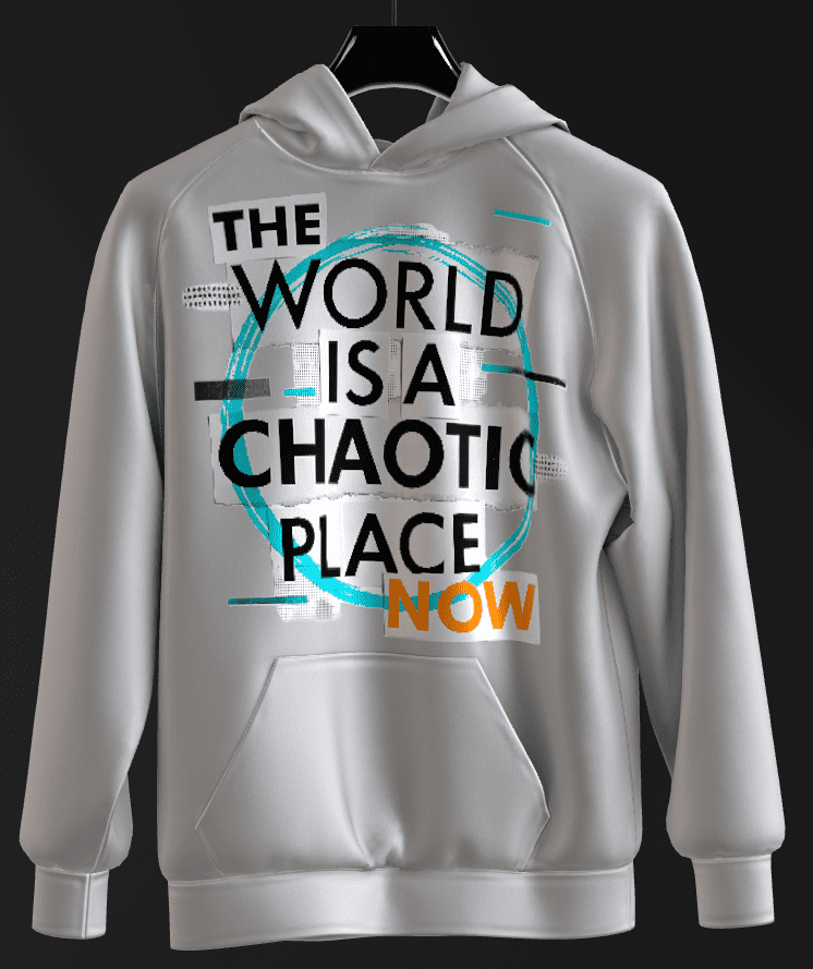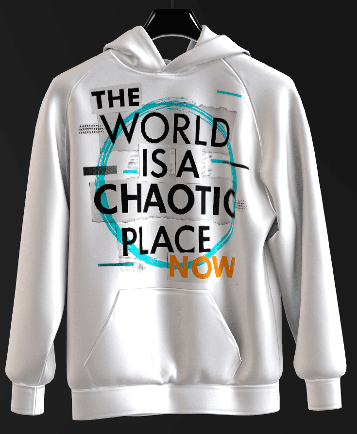 - This digital collage piece is a bold, confrontational statement rendered in a gritty, fragmented style. At its core is the stark declaration “THE WORLD IS A CHAOTIC PLACE NOW”.