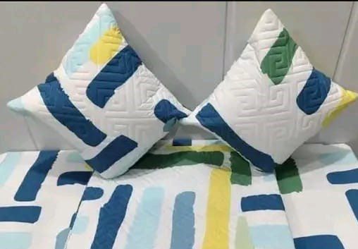 IN TOTAL THERE ARE 5 PCS IN THIS PACKAGE, 1 BEDSHEET, 2 QUILTED PILLOW COVERS, 2 QILTED CUSHIONS