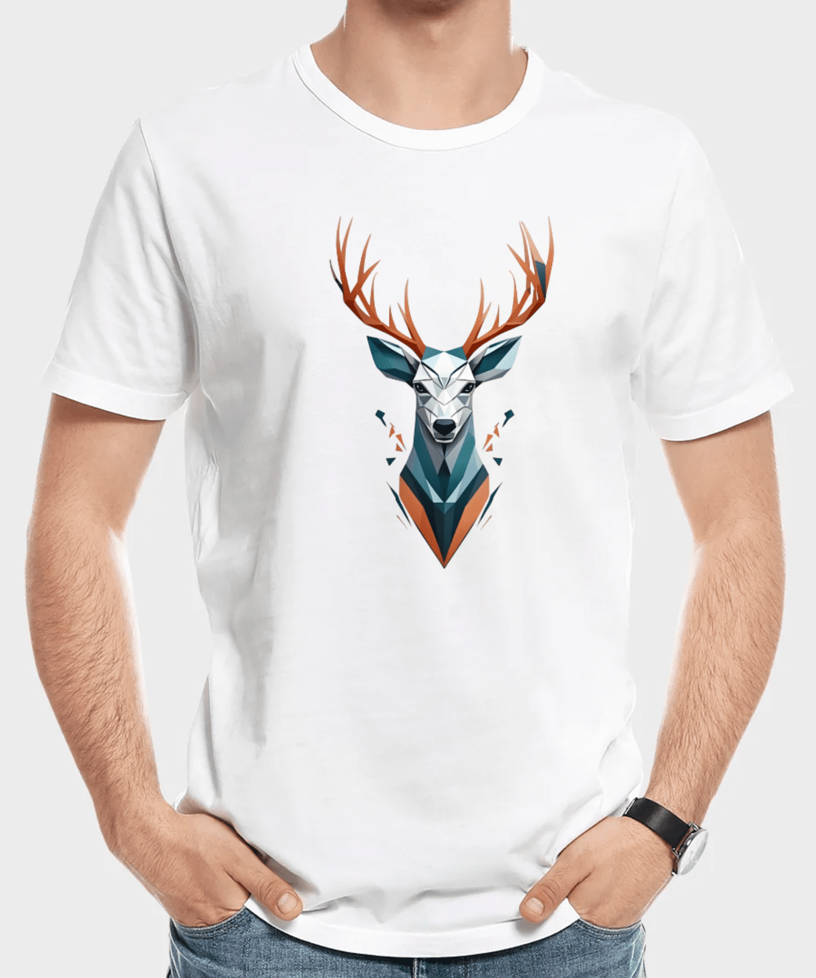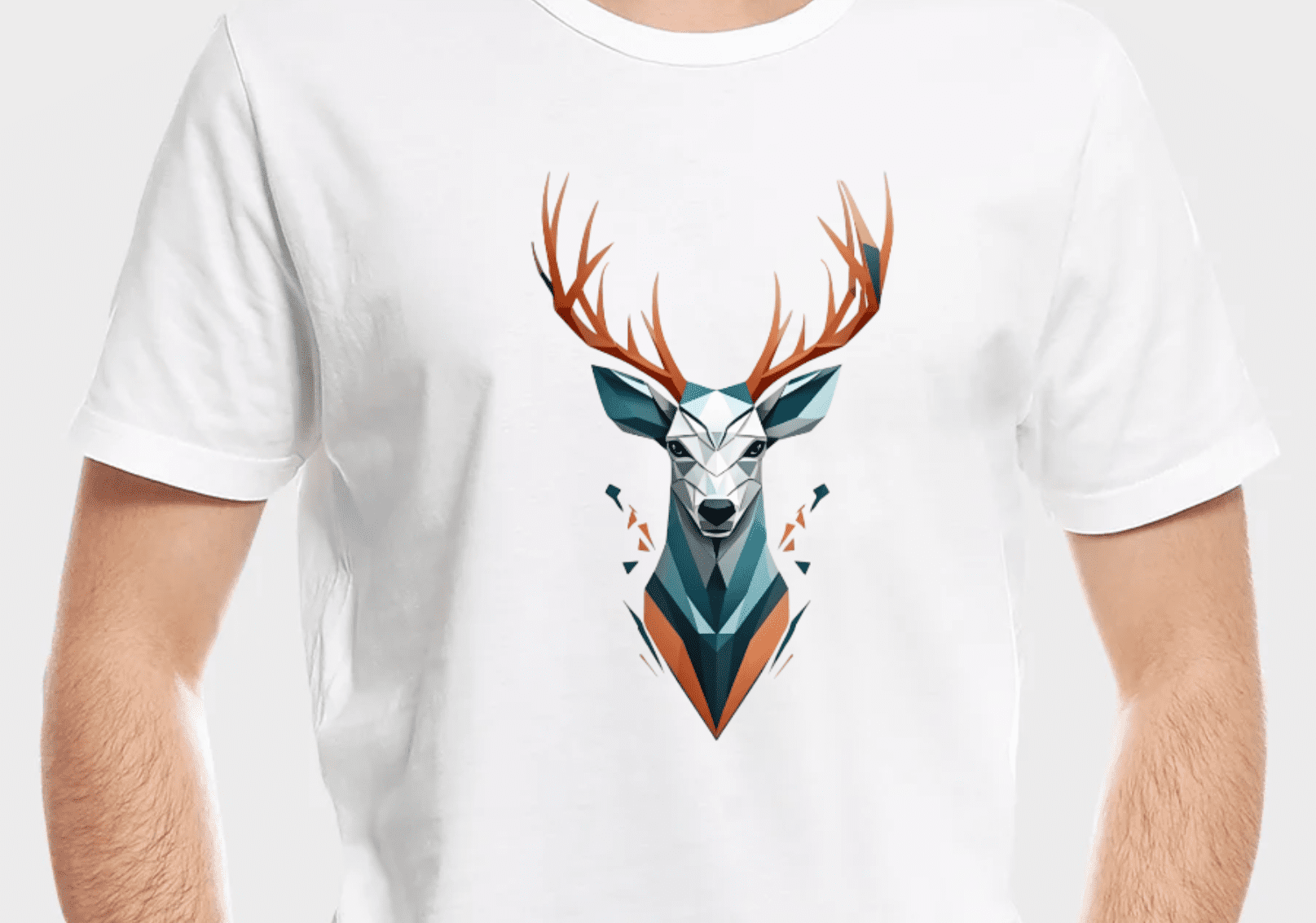 This artwork is a striking, modern representation of a deer, crafted in a geometric, low-poly style that emphasizes sharp, faceted shapes and a minimalist color palette.