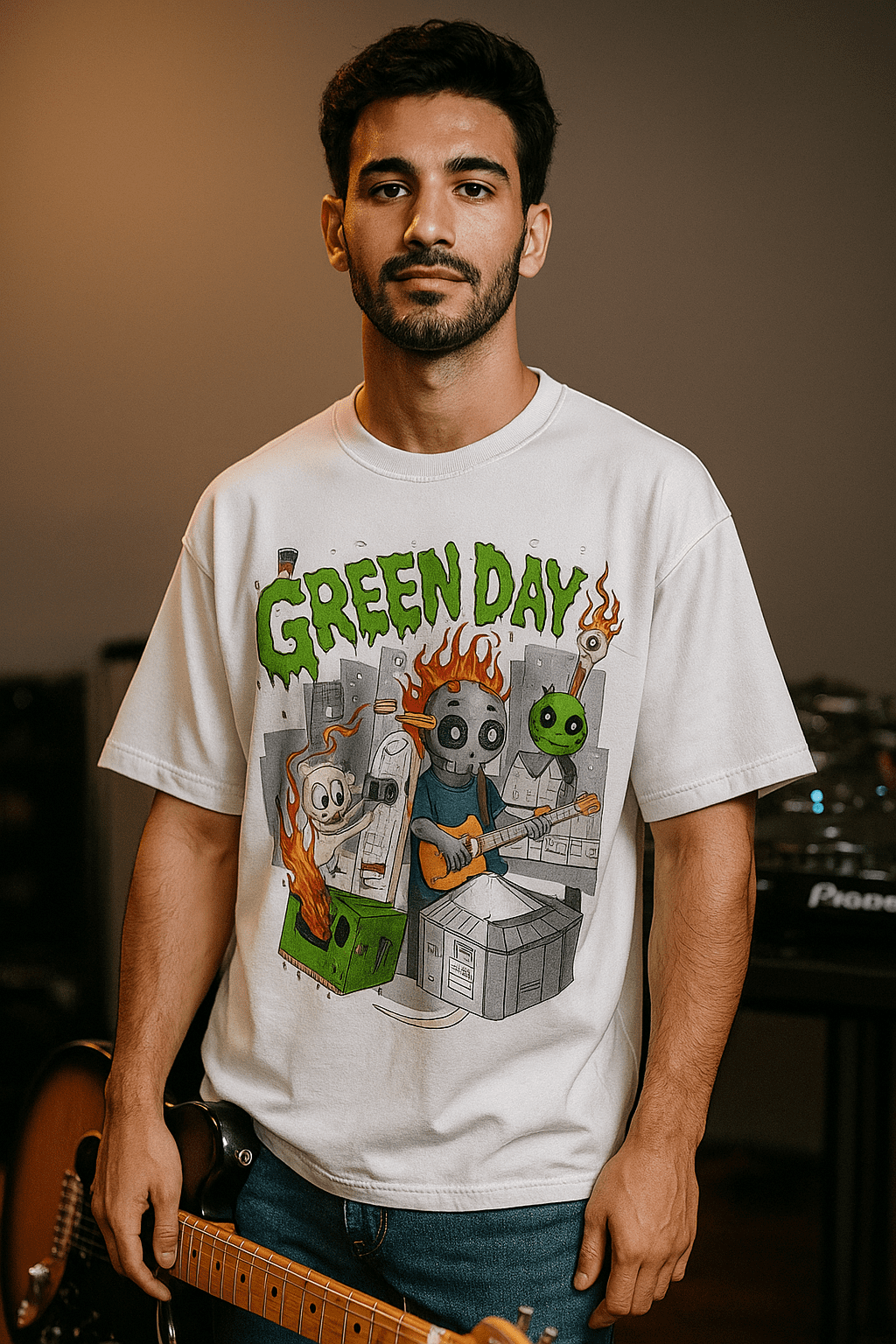 This piece is a dynamic fusion of music, satire, and surrealism, capturing Green Day’s spirit in a visually striking and imaginative way