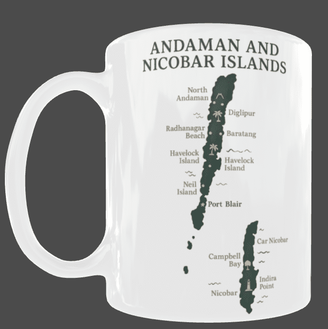 - The artwork is a stylized map of the Andaman and Nicobar Islands with Sea Shark in the centre, featuring a minimalist yet evocative design which features stunning beaches, islands, and natural landmarks.