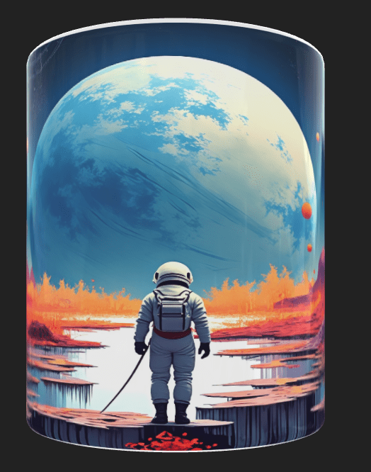 The art represents humanity’s journey into the unknown, the search for new worlds, or a reflection on our place in the cosmos.