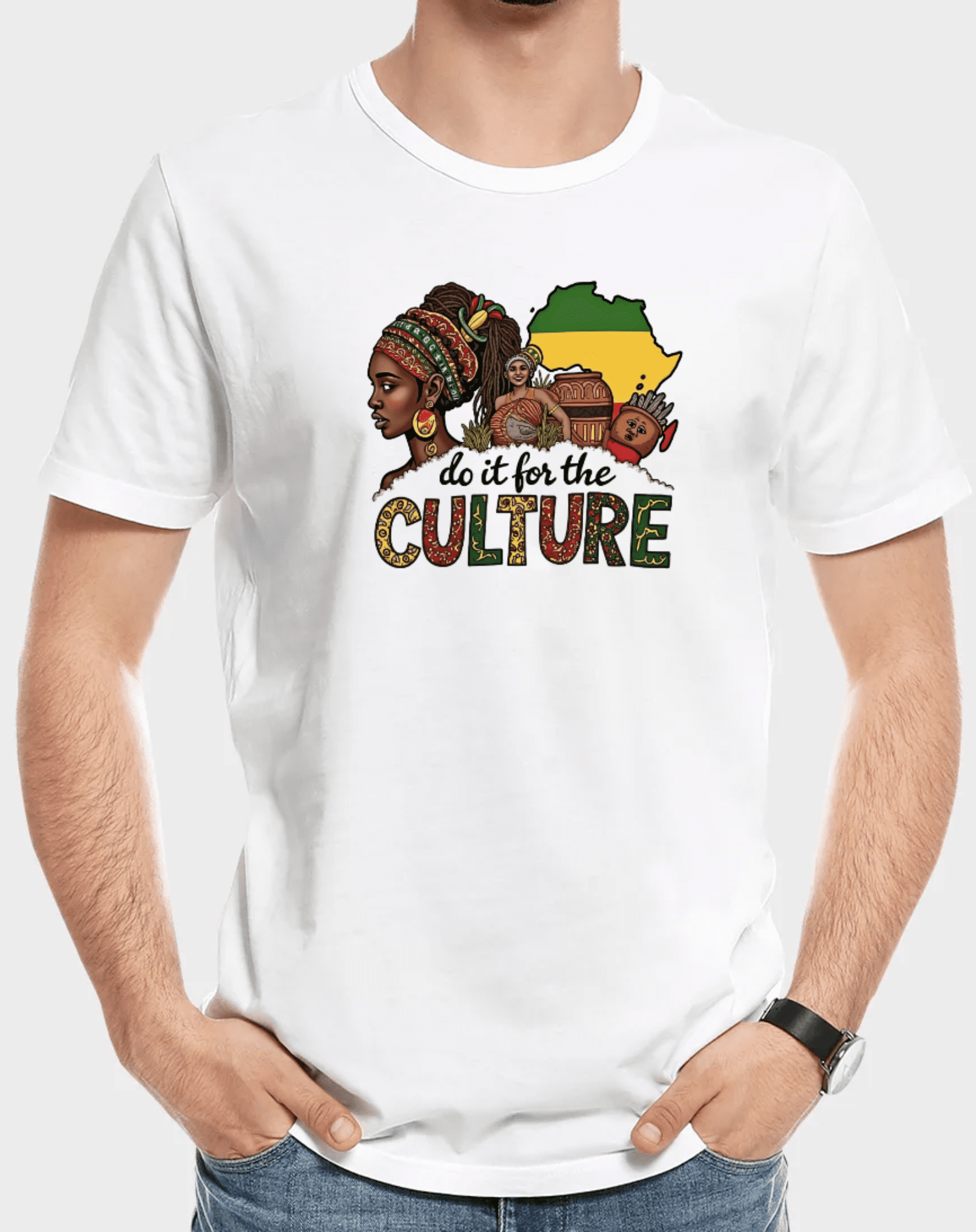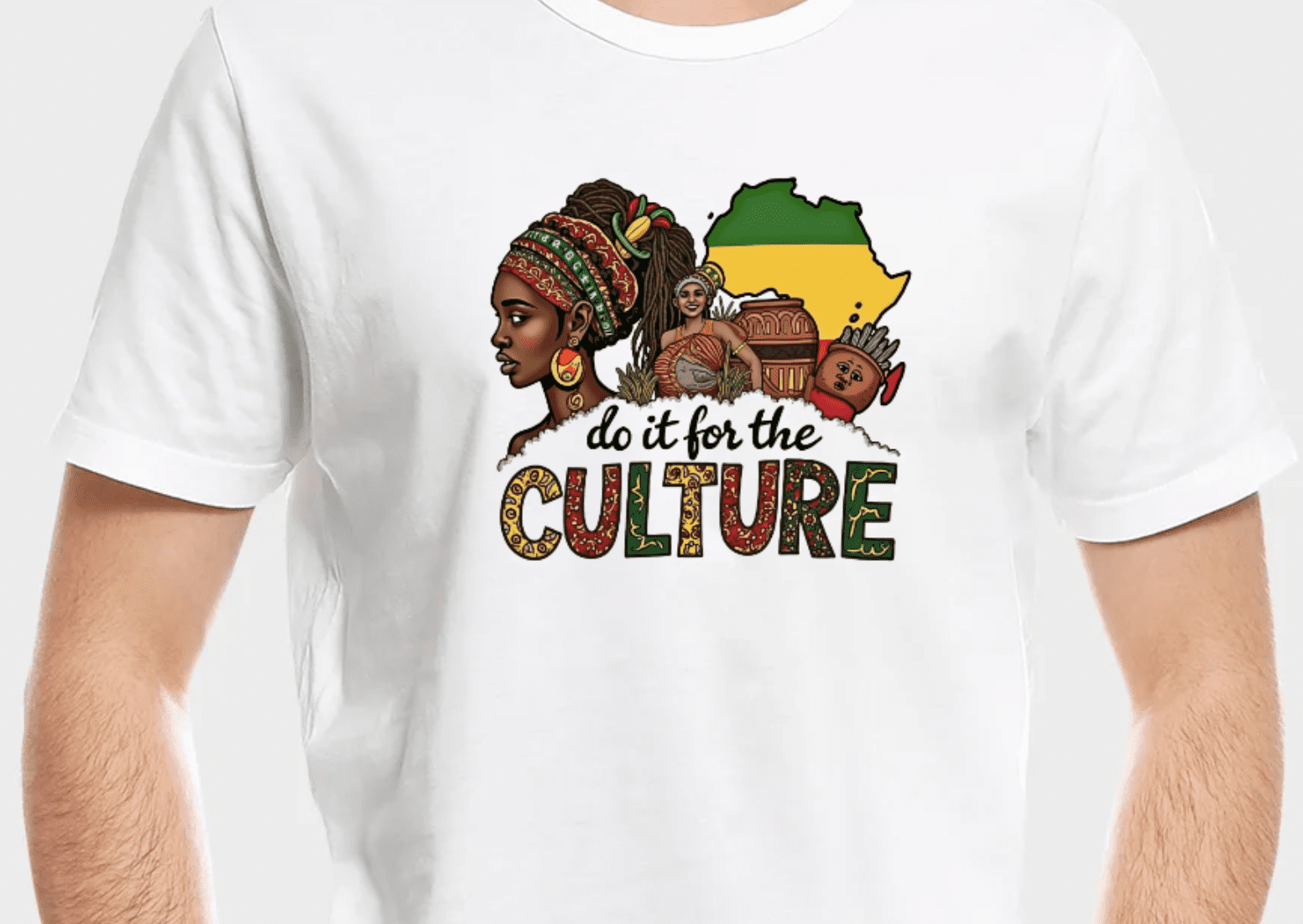 - This vibrant artwork celebrates cultural pride and heritage, featuring elements like traditional attire, pottery, and the African continent in the colors of the Pan-African flag (red, yellow, green). The phrase “do it for the CULTURE” emphasizes the importance of honoring and preserving cultural identity.