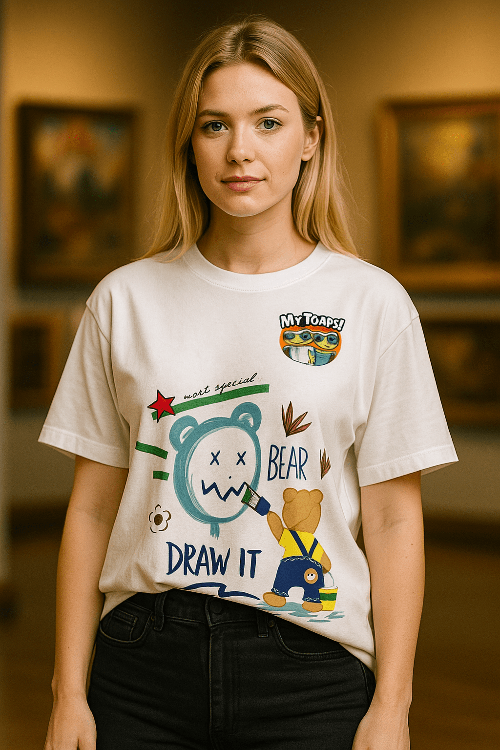 - The Art is inspired by The teddy bear, a universal symbol of comfort and innocence, is reimagined as an artist, subverting its usual passive role.