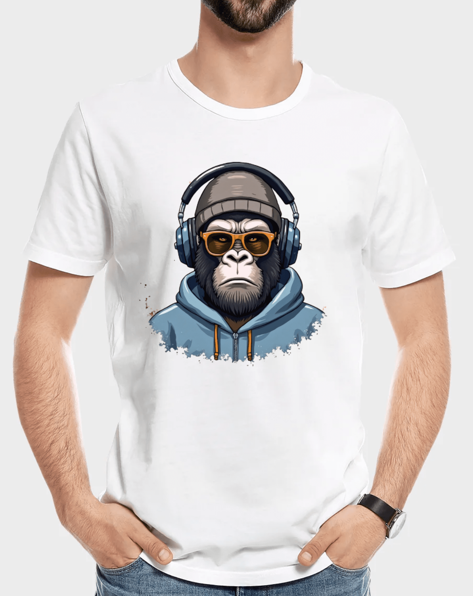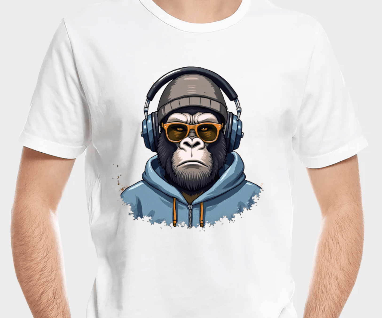 - The overall vibe of the piece—sunglasses, headphones, and a stern look—exudes confidence and nonchalance, as if the gorilla is unbothered by the world around it, fully in its own zone.