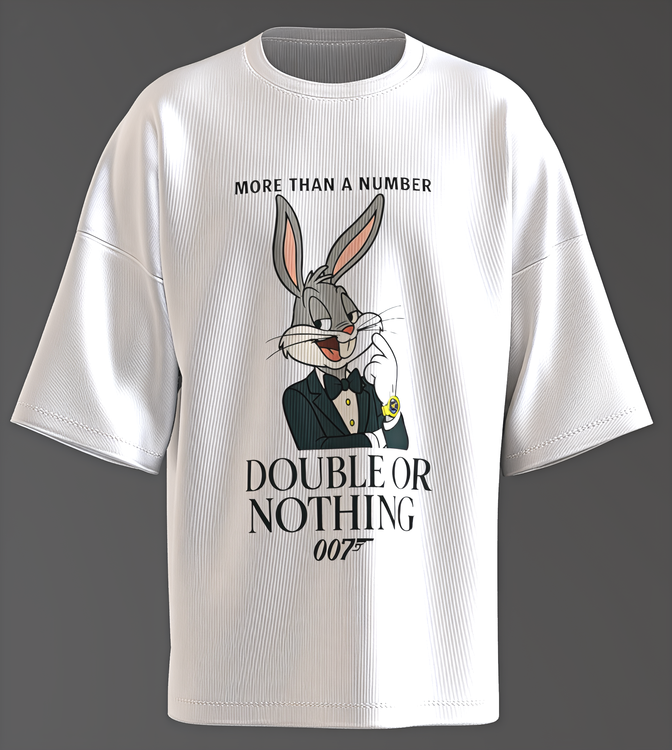 - This artwork features a clever and humorous mashup of Bugs Bunny, the iconic Looney Tunes rabbit, reimagined as a James Bond-style secret agent.