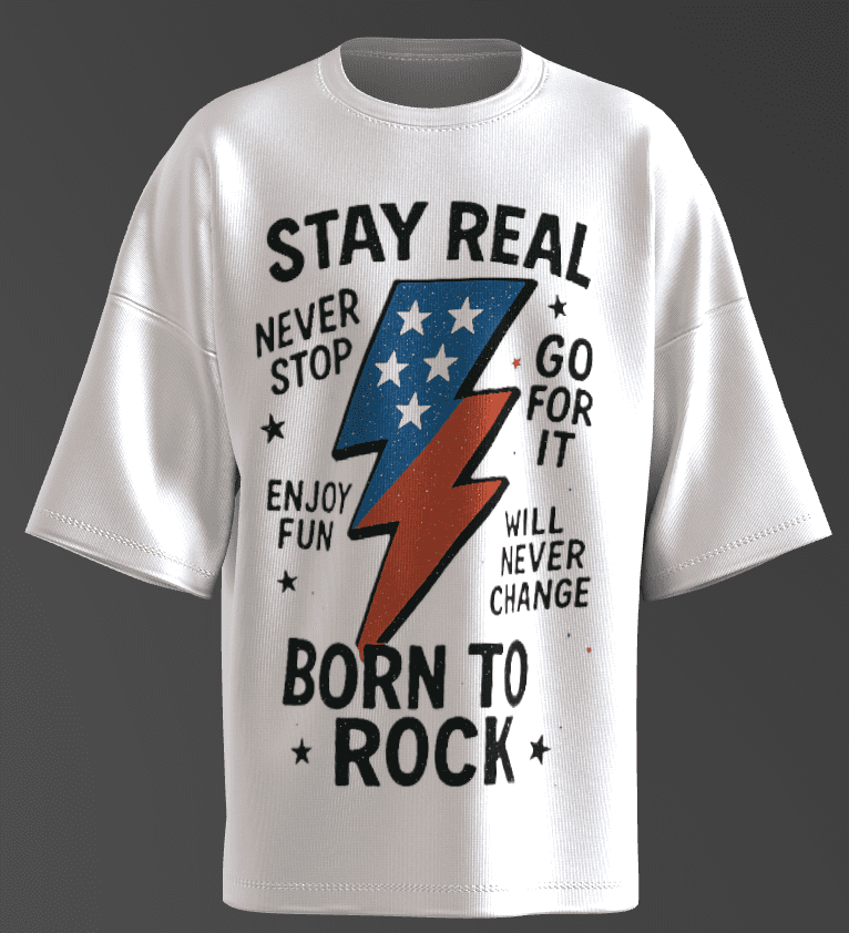 • The artwork draws inspiration from classic rock culture, patriotic symbolism, and motivational aesthetics, nods to the rebellious, free-spirited ethos of rock music, possibly echoing legends like Bruce Springsteen or David Bowie.
