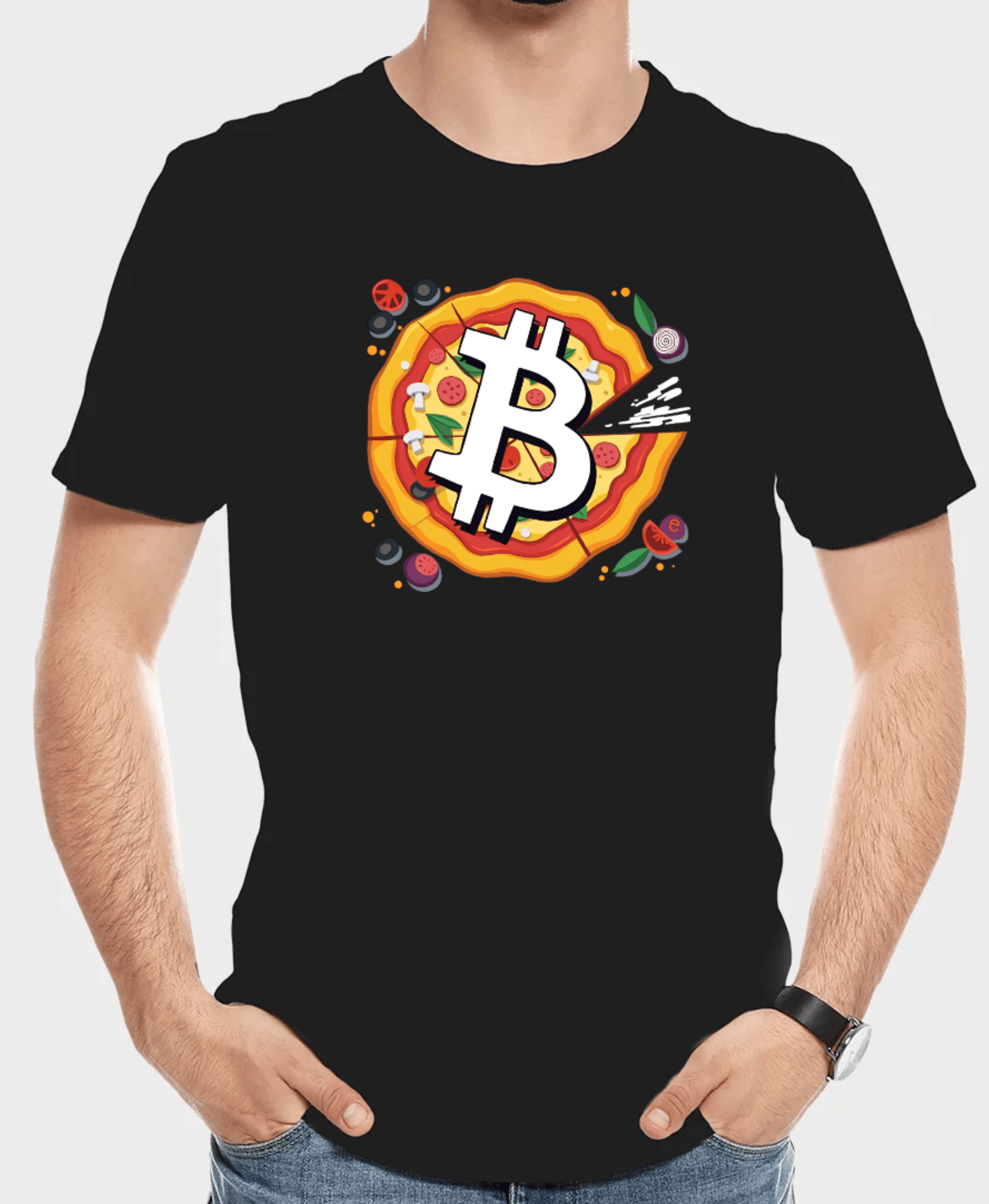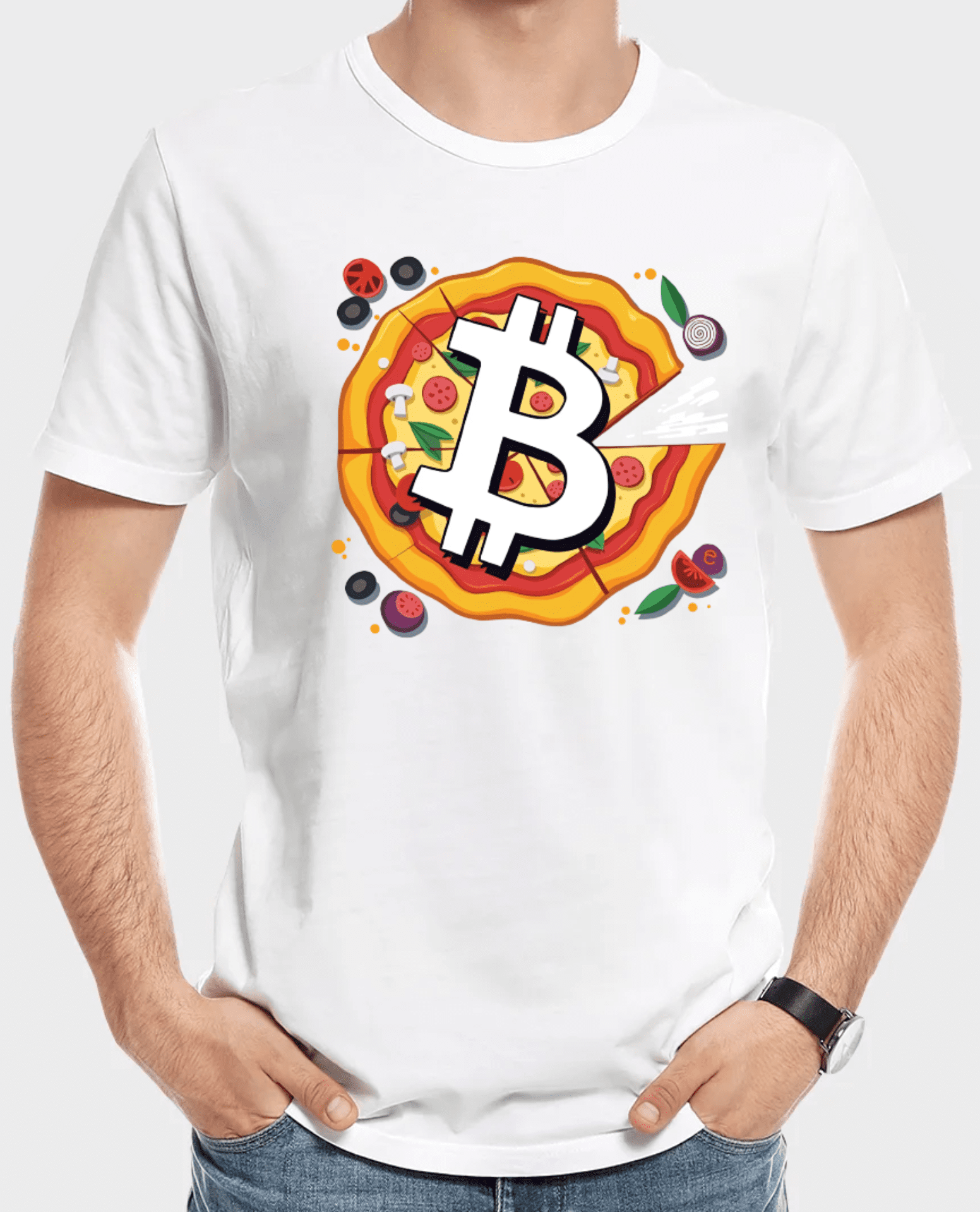 Its geometric edges a nod to the coded precision of Satoshi’s dream, while the playful splash of cheese mocks the volatility of its value with every gooey drip.