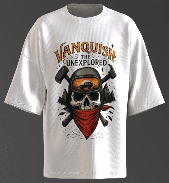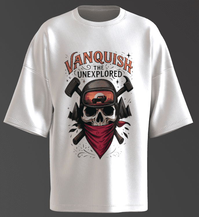 The phrase “Vanquish the Unexplored” serves as a rallying cry, encouraging bold exploration and resilience against challenges, possibly tied to outdoor adventures or personal growth.