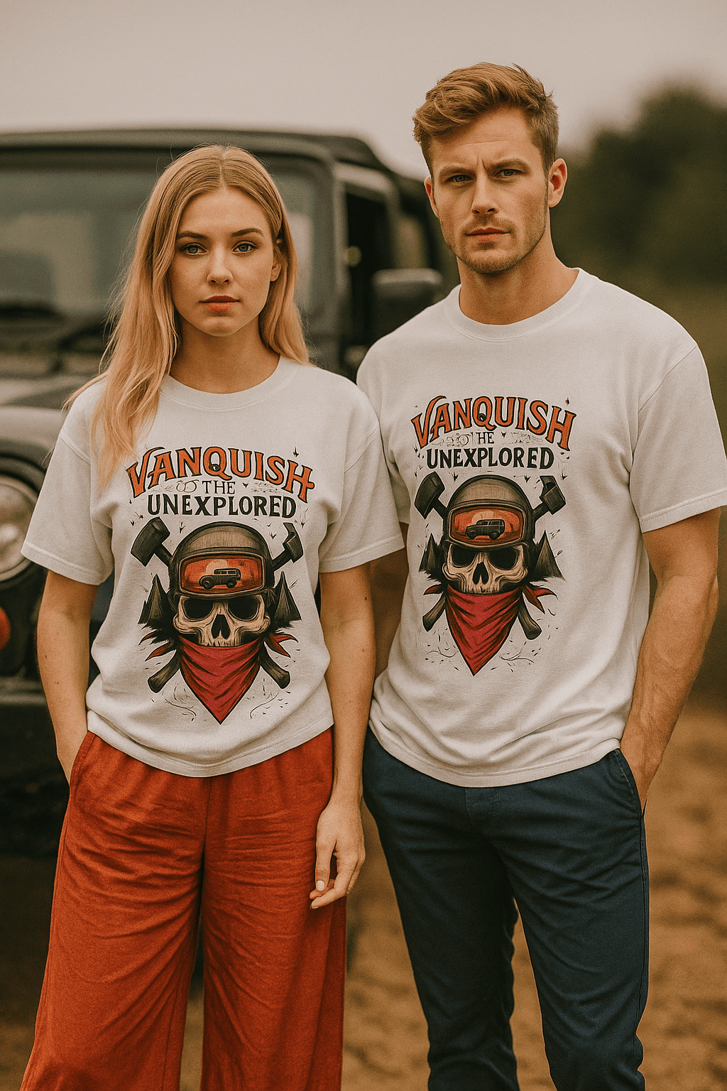 The phrase “Vanquish the Unexplored” serves as a rallying cry, encouraging bold exploration and resilience against challenges, possibly tied to outdoor adventures or personal growth.