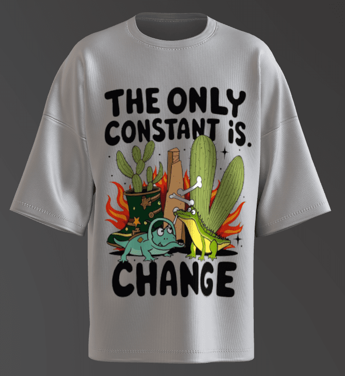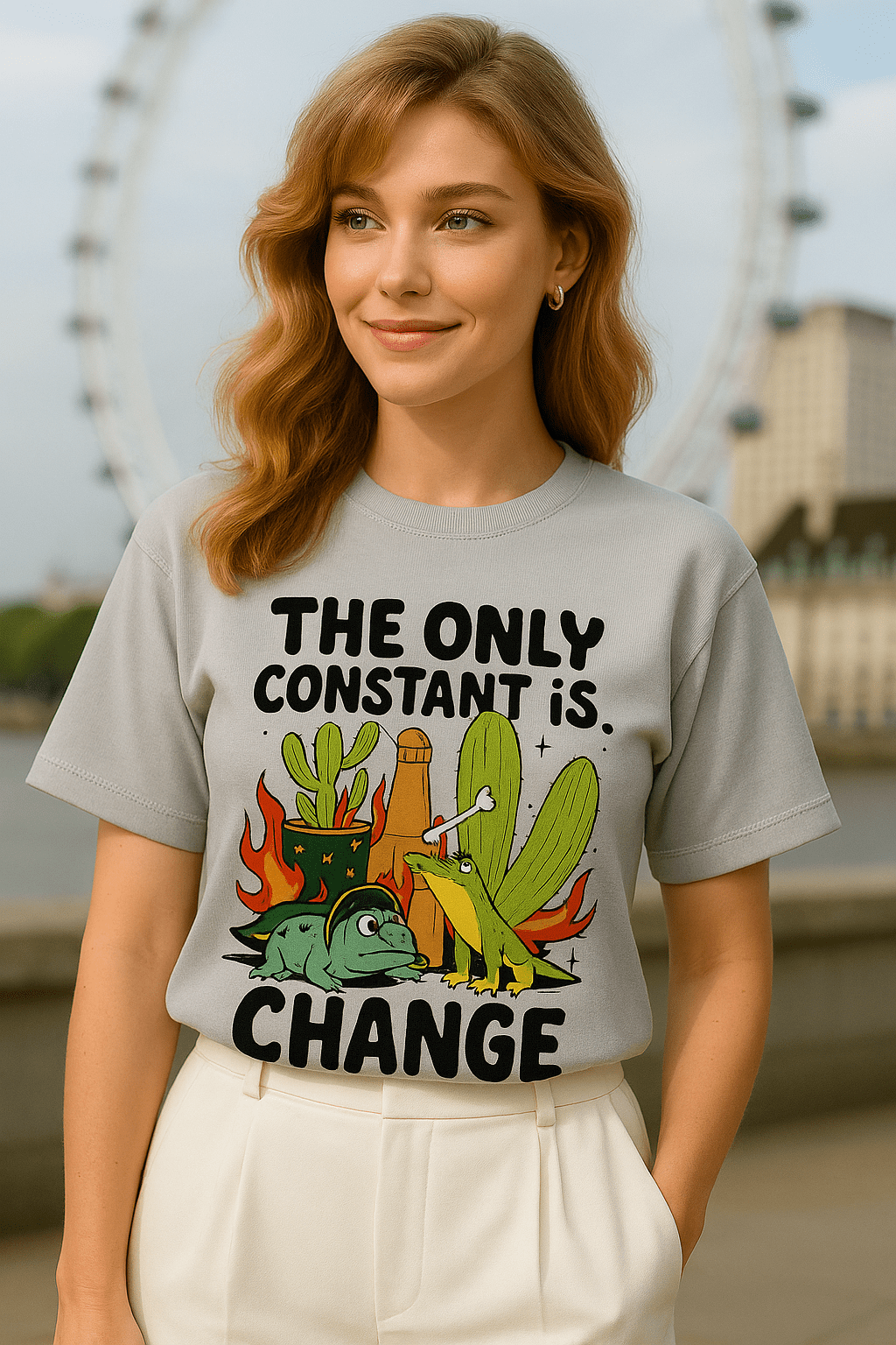 This artwork combines a timeless philosophical idea with a lively, imaginative design, encouraging viewers to embrace change with a smile.
