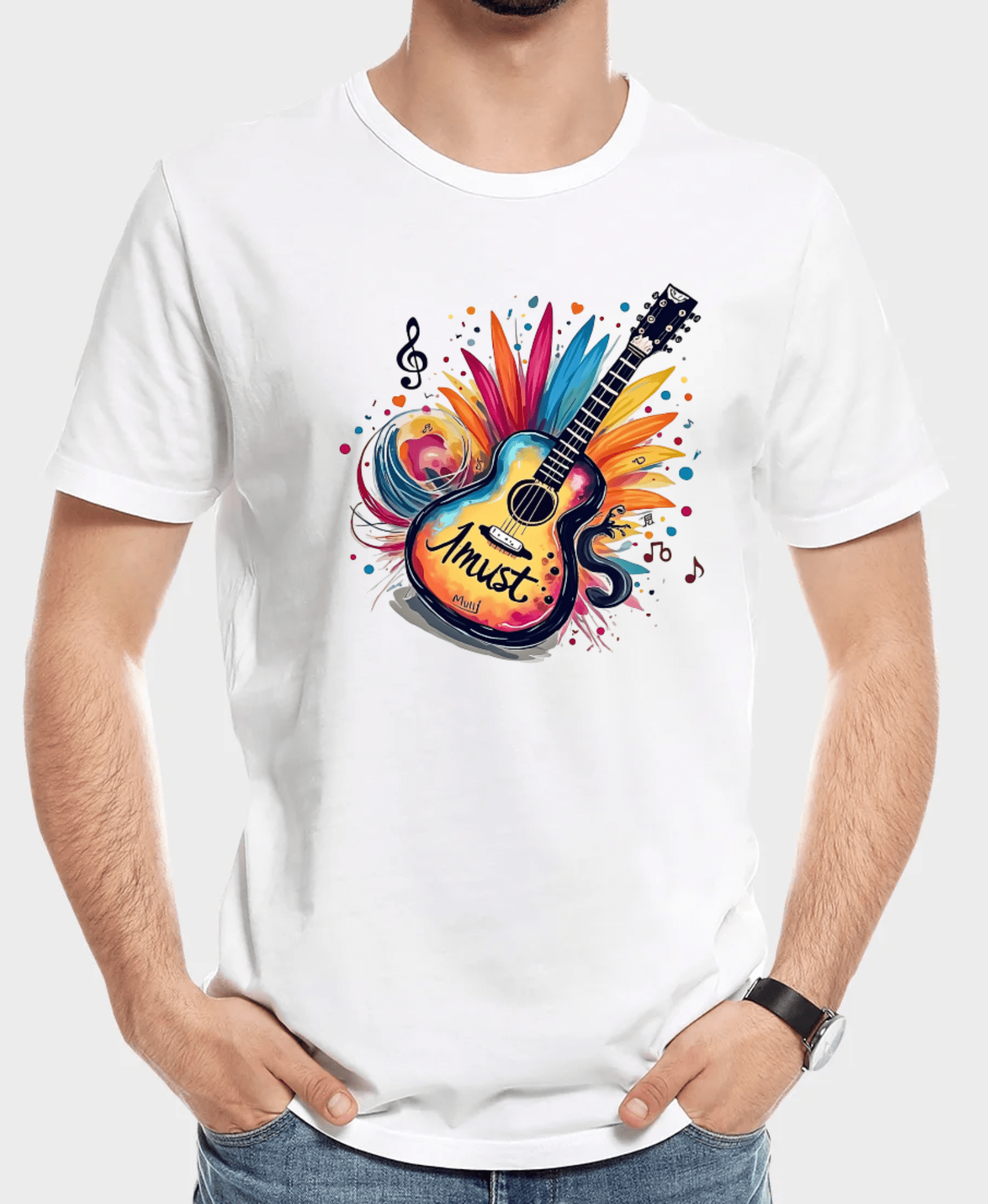 • The piece exudes energy, creativity, and a deep connection to music, paired with the trippy, colorful bursts, mirrors the aesthetic of 1960s psychedelic posters for rock concerts.