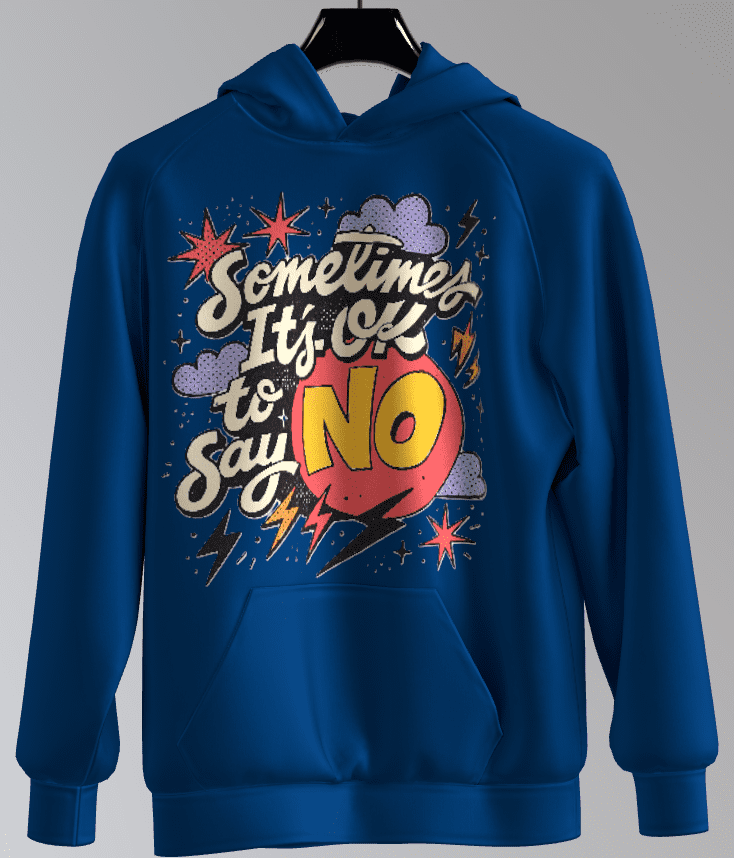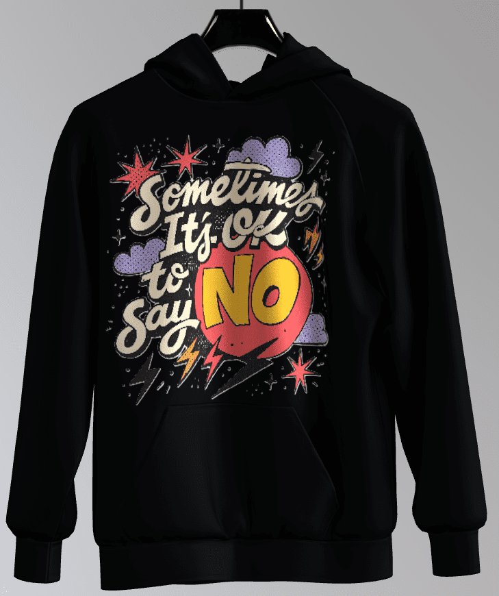Sometimes It’s Okay to Say NO” , is a high-energy typographic explosion that turns boundary-setting into a celebratory fireworks show. Created in a bold, retro-futuristic style reminiscent of 1960s psychedelic posters meets modern meme culture, it radiates unapologetic vibe-check energy.