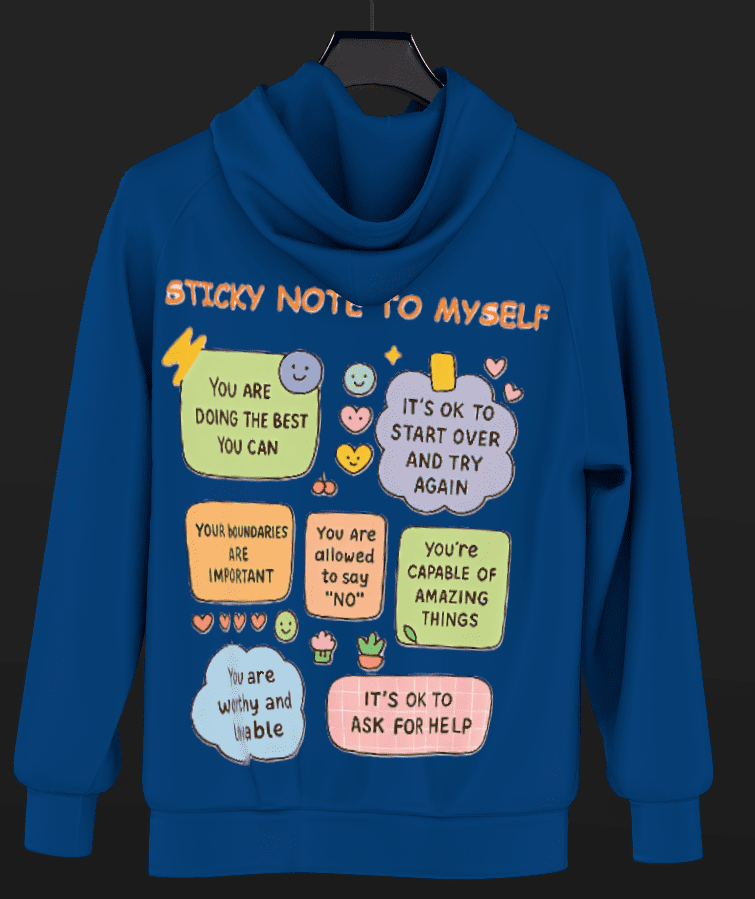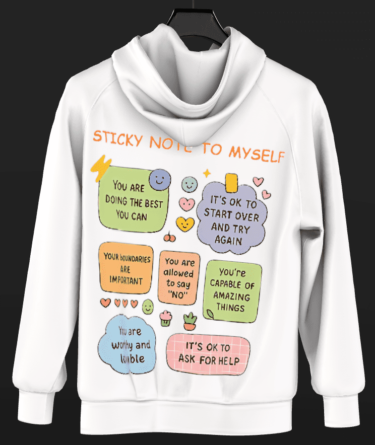 This piece draws inspiration from a rich tapestry of psychological and cultural wellsprings, blending modern mental health movements with nostalgic, analog creativity.