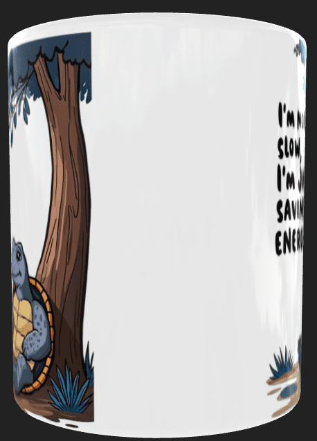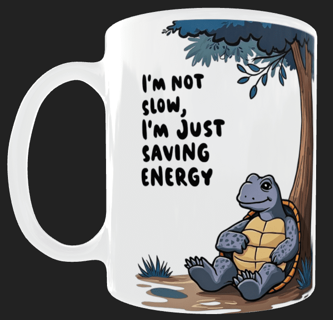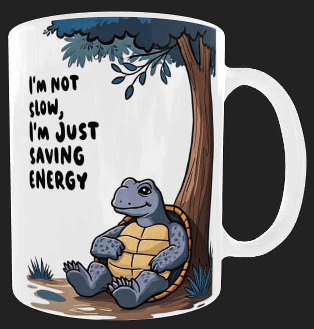 The humor lies in the turtle’s self-awareness and confidence. Instead of being defensive, it owns its pace with a witty justification, making the viewer smile while also encouraging them to rethink assumptions.