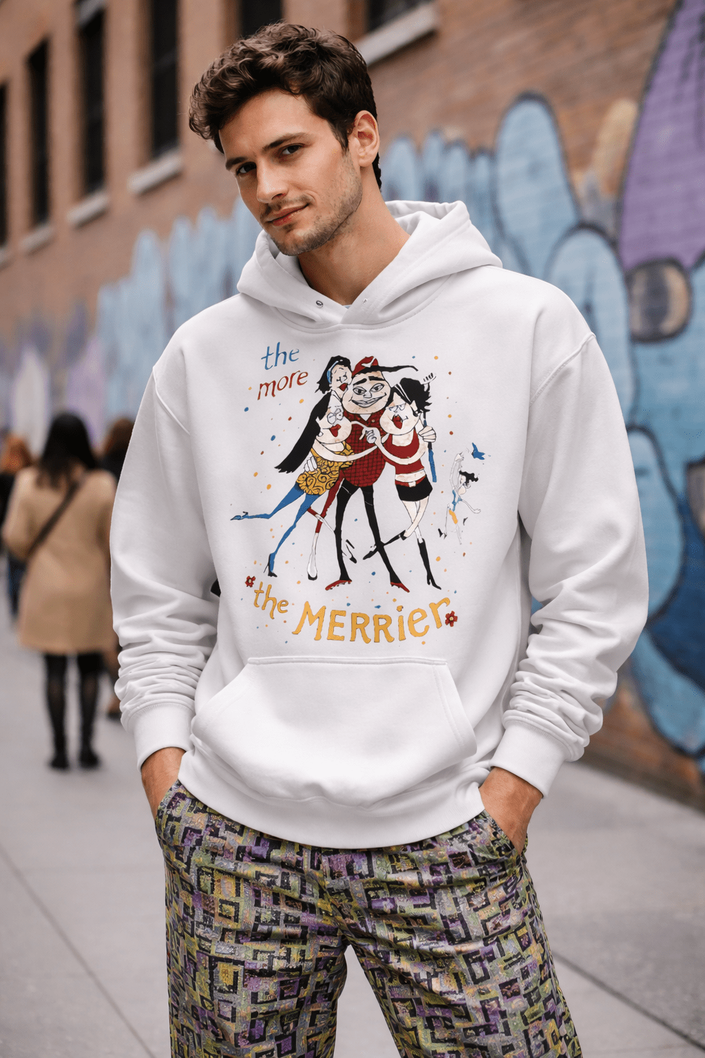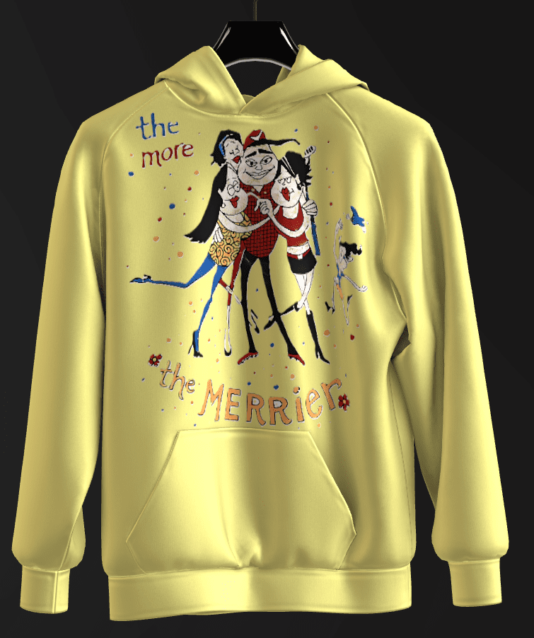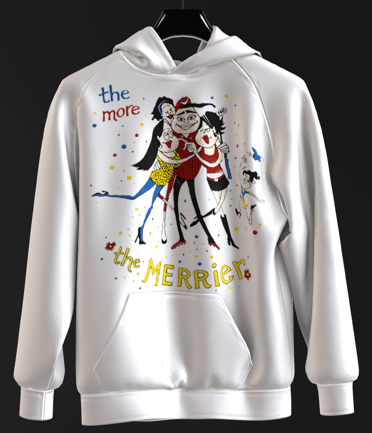- The piece draws from the classic English proverb “the more the merrier”, which dates back centuries and emphasizes that larger groups amplify fun and joy.