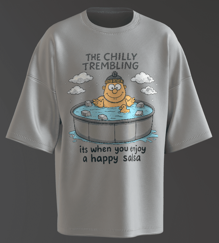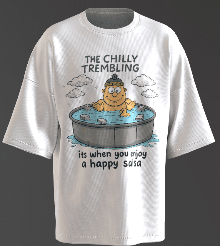 The pun in the text adds a layer of cleverness, inviting viewers to ponder whether it’s about dancing in an ice-cold pool or enjoying spicy salsa while freezing.