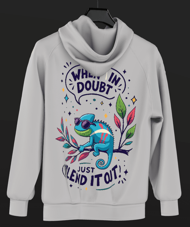 The void is undefeated, but I can still be cozy inside it.” It’s not defeatist — it’s post-despair swagger. The chameleon has accepted the message of the first piece so completely that he’s turned nihilism into a lifestyle brand. It’s the ultimate “touch grass” response to cosmic horror: if nothing matters, then the pressure’s off — just change color and enjoy the ride. In short: