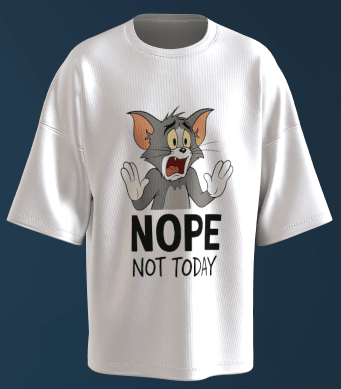 The first image shows Tom with a shocked expression, hands raised in a defensive gesture, and the bold text “NOPE NOT TODAY” overlaid, suggesting a humorous refusal or avoidance of a situation.